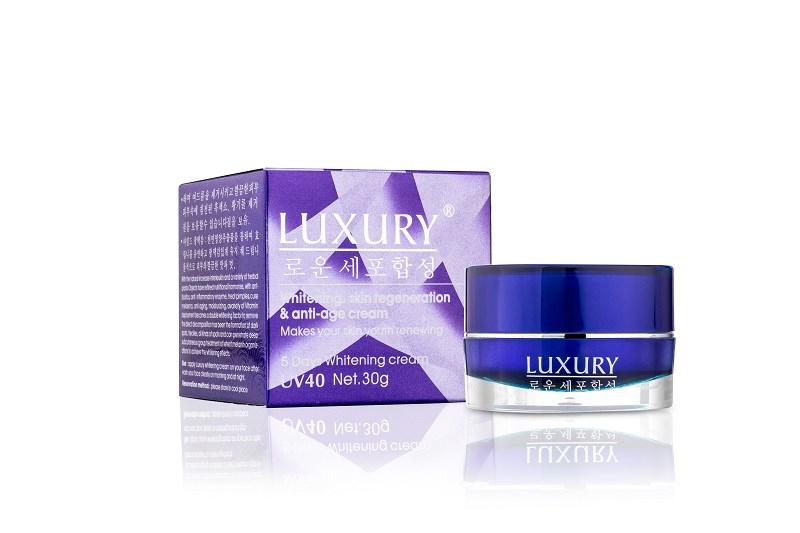 Cream tái sinh tế bào da mới, dưỡng trắng với lượng thành phần cao cấp 3 lần, chống lão hóa tái tạo sản sinh tế bào mới làm da tỏa sáng tươi trẻ chỉ trong 5 ngày. Ngăn Ngừa tia UV gây sạm nám da. Ngay khi chạm vào da, da sẽ mềm mại, mịn màng, ức chế sự sản sinh melanin đem lại làn da trắng hồng rạng rỡ. Cream Luxury loại bỏ mọi vết nám, tàn nhang, đồi mồi, hết mụn, bổ sung cân bằng độ ẩm thiết yếu giúp da luôn sáng đẹp. Cho làn da luôn căng mịn và trắng hơn, giảm vết sạm trên da, giúp da hấp thụ nhanh các dưỡng chất làm se khít lỗ chân lông , làm da mịn màng và tươi